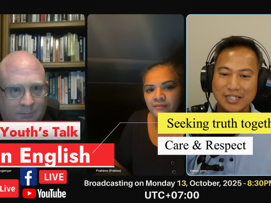 Let’s meet Dr. Jim, profession in medicine, Mr. Don Hoover , a former biz owner, both of the US. Mr. Puy Chantha, a young biz owner, and Mr. Pov, a school principal, both from Cambodia. We are discussing a topic “pursuing excellence in profession”